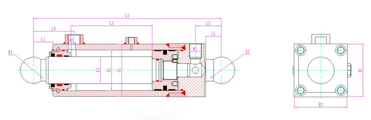 | 產(chǎn)品型號 | 行程 | 安裝距 | 額定壓力 | L1 | L2 | L3 | L4 | L5 | L6 | D1 | D2 | D3 | R1 | R2 | B1 | B2 | M1 | M2 |